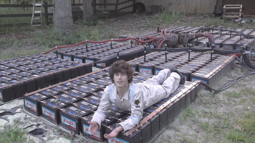 A couple of years ago, self-described “professional mad scientist” and undisputed YouTube legend Drake “Styropyro” Anthony uploaded a video featuring various experiments performed with the crazy amounts of electric current provided by 100 car batteries wired in series. Ever since, he’s been teasing a scaled-up version with 400 car batteries.