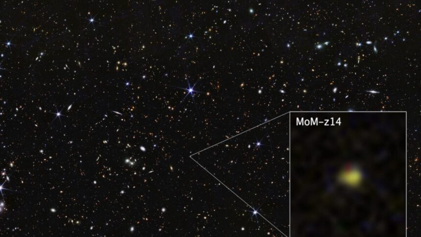 Webb first spotted MoM-z14 in May 2025, an exceptionally luminous and compact galaxy that’s around 50 times smaller than the Milky Way. The galaxy appeared to be very young, teeming with the formation of new stars.